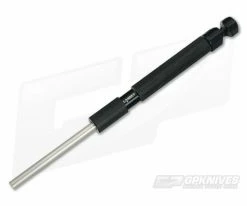 The Lansky Tactical Sharpening Rod features a retractable diamond rod for compact carry with the power of a diamond stone as well as a tungsten carbide pull-through element for quick fixes in the field. The casing is made of non-slip metal that has been knurled for a grip. This compact sharpener is ideal for quick use in the field or around the house and can be easily stored in a drawer or tool kit.