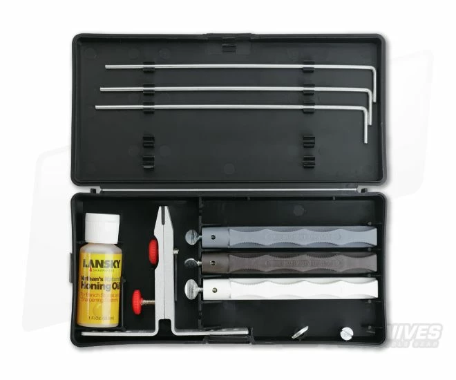 Lansky LKNAT Natural Arkansas Knife Sharpening System is simple and easy to use. Sharpens all sporting, hobby and household knives. Patented Lansky System provides consistent angle to create a professional edge. Natural Arkansas Stones are famous the world over for their unique capacity to impart an extremely fine finish to a cutting edge. The Lansky Controlled-Angle Sharpening System is designed to give your blade a professional, razor sharp edge every time. 17°, 20°, 25° & 30° sharpening angles.