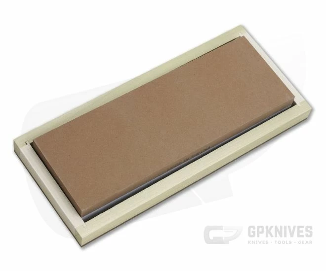 The 400/3000 Dual Grit Pride Abrasive 8″ Aluminum Oxide Water Stone is made from high quality bonded aluminum oxide. The 400 Grit is a good transition from removing damage and reprofiling to coarse sharpening. 3000 Grit is the next step after 1000 grit for general sharpening and delivers a slightly finer finish for general sharpening. This one comes with a high quality wooded box for display or storage.
