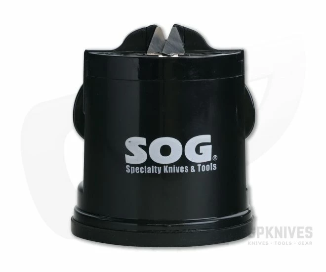 Made from durable, lightweight, Glass-Reinforced Nylon, the SOG Countertop Sharpener attaches to any flat, non-porous surface via a lever activated suction cup for fast, easy, pull-through sharpening by way of the carbide sharpening inserts.