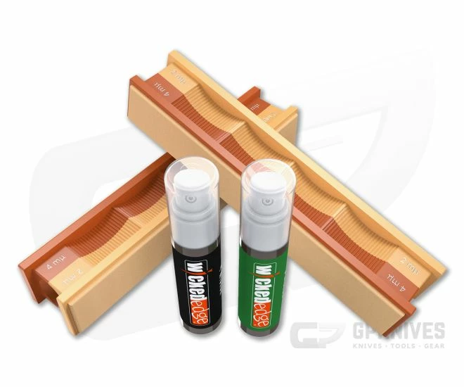 Wicked Edge polycrystalline diamond emulsion is a stropping compound that lasts longer and cuts more aggressively than paste for greater performance. They work so well with Wicked Edge blank leather strops, they have been packaged together in this set.