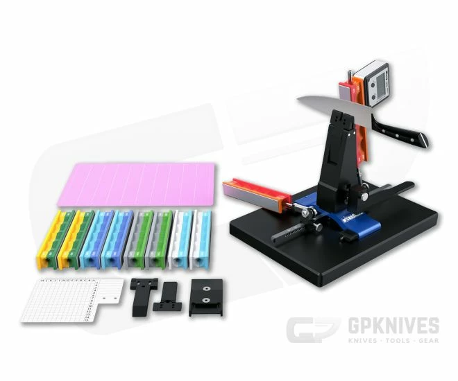 With 1 degree coarse adjustment and .05 precision micro adjustment, the WE130 offer sharpening from 10-35 degrees per side handling everything from Japanese Sashimi Knives to Cleavers and works with asymmetrical grinds as well. The abrasive set included with the Pro-Pack III gives you a complete set of tools to customize your edge geometry from re-profiling to final finish, toothy edge to mirror polish.