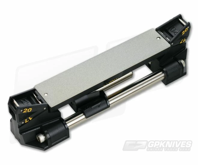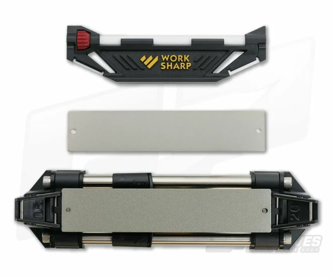 Designed and built in the USA by Work Sharp Knife & Tool Sharpeners, the Guided Sharpening System with Pivot-Response is the ultimate sharpening solution for every knife you own. This is the complete manual benchtop sharpening and honing system.ย Its innovative Pivot-Response System allows the abrasive to follow the curve of the blade while sharpening. Created with both novice and master sharpeners in mind. The skill is built into the tool. No jigs. No clamps. No nonsense.