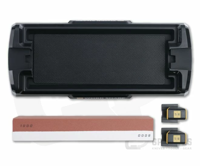 A great way to transition from guided sharpening to freehand, the Work Sharp Benchtop Whetstone offers a traditional water stone sharpening experience with some modern enhancements. The premium dual 1000/6000 grit aluminum oxide sharpening stone allows you to restore your edge and then refine it to exceptional sharpness. The abrasive slowly breaks down to create a slurry for fast sharpening performance while the water control base with anti-slip feet offers a stable platform with orderly operation and fast clean up.